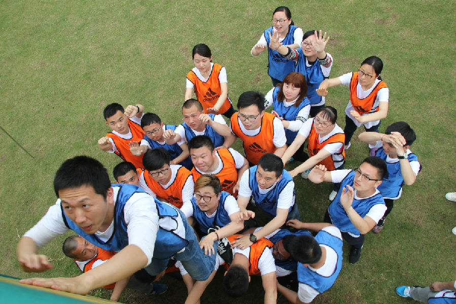 二战时期,在波涛汹涌的大海上,一只商船被德国军队的炮弹击中,船在半小时后将会沉没,39名船员的生命受到威胁。这时有一艘过往船只赶过来营救,可是船上没有任何营救设施,船员们只有靠自身的力量才能翻越4米多高的船身,获得解救。上面的故事便是“逃生墙”也叫“毕业墙”项目的由来。一堵4.5米的木板墙,光滑、没有任何工具,要求所有的队员在规定的30分钟内,通过合理规划及相互协作,不得发出声音,全部翻越“船身”逃生。在这项挑战中,除了感叹“团结的力量是无穷的”、“人的潜能是无限的”以外,最让我震撼的是每个人的奉献精神。无数语言化为简单感谢二字。感谢第一个爬上墙头,坚持救上一个又一个人的勇士;感谢在下面咬着牙,强忍疼痛,甘当基石,让一个个同伴们踏着自己的肩头求生的英雄们;感谢冒着烈日,时刻做好保护姿势的同伴们;当墙下只剩下最后一位同伴时,这时已经没有人梯可以借助了,他唯一可以利用的就是挂在墙上的最后一个队友,用劲全身力气向上一跃,成功抱住了墙上队友的腰,通过队友的身体继续往上爬,终于紧紧握到墙面上队员的手,成功跃上墙头的时候,拓展训练基地里响起了雷鸣般经久不息的欢呼声和掌声,我为身处这样的团队骄傲,更为队员们精诚团结的精神骄傲。看着大家灿烂的笑容,看着貌似不可能完成的任务被我们踏在了脚下,我被深深地感动了,是什么力量使我们战胜了貌似不能完成的困难呢?答案只有一个,那就是集体的力量,团队的力量。因为每个人队员对团队的关注已远远超过了自身,将团队合作的精神发挥得淋漓尽致。拓展训练结束时,每个队员脸上都闪耀着自信的微笑。是的,“我们战胜了自己!”每个队员相互的目光都充满着信任,是的,“我们在一起是最棒的!”这次拓展训练给了我一次终身难忘的经历。它让我们建立了相互的理解和信任,让大家懂得了感恩,激发了团队意识,形成了积极、高效的团队氛围。这次训练,不仅仅是一种简单的训练,更是一种文化、一种精神、一种理念的渗透。